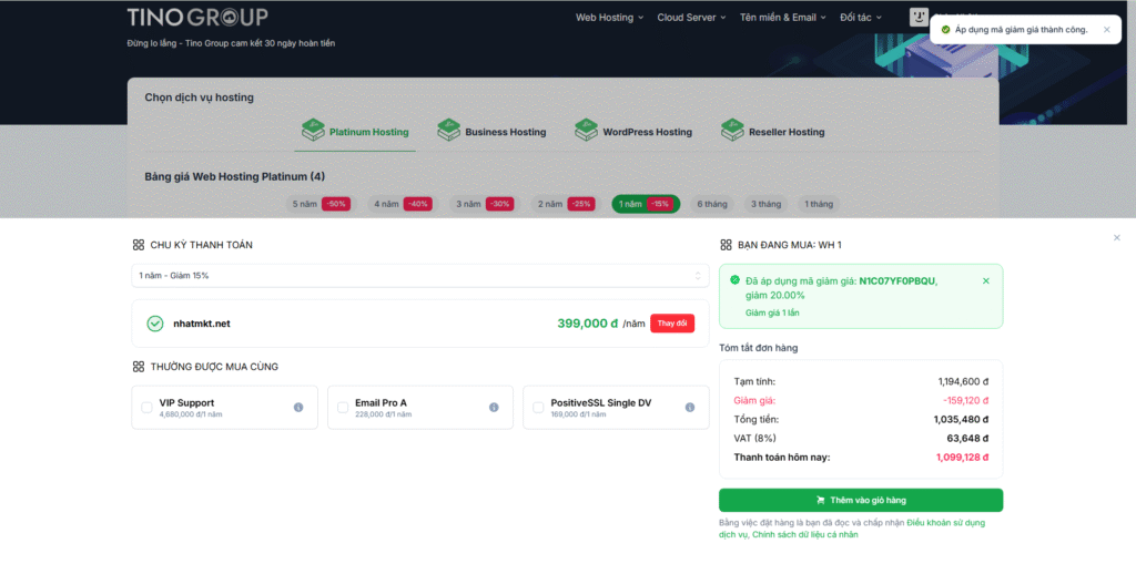 Hướng Dẫn Mua Hosting Tại TinoHost và Nhận Giảm Giá 20%
